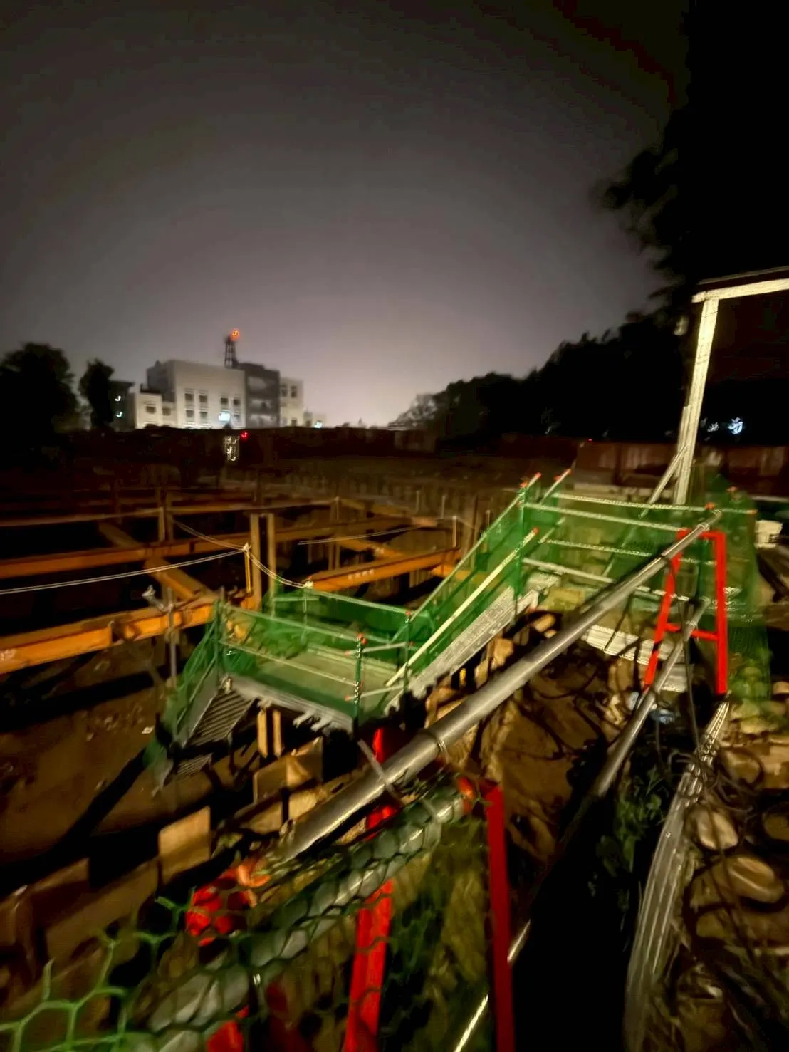 安全欄杆+踢腳板+圍網施作、開挖原土護欄